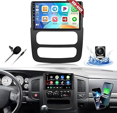 4G64G Car Stereo Radio for 2002 2003 2004 2005 Dodge RAM 1500 2500 3500 with Wireless CarPlay Android Auto Android 15 Head Unit 9 Touch Screen Radio with 16EQ GPS FM Bluetooth 5.0 HD Backup Camera